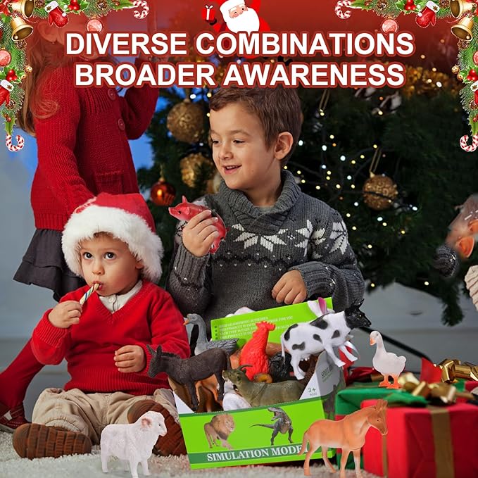 - Large farm animals for toddlers 1-3 is suit a Montessori perspective. Play farm animals can be used for learning, ognitive learning, creating scenarios, hands-on skills, vocabulary learning. Also it can be used for birthday parties, holiday parties, and holiday decorations. Toddler farm animals a gift for Halloween, Thanksgiving and Christmas for your child. Easy to play with.