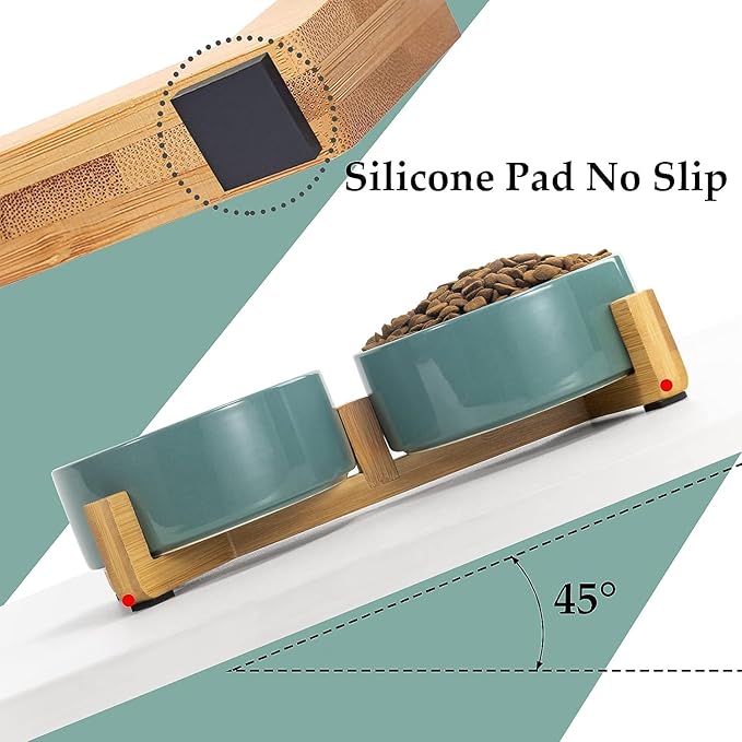 - [Double Bowl Design]:One dog bowl for food and one for water, Each ceramic cat bowl has a Unique wooden stand, raising the dishes closer to your pet for more comfortable eating