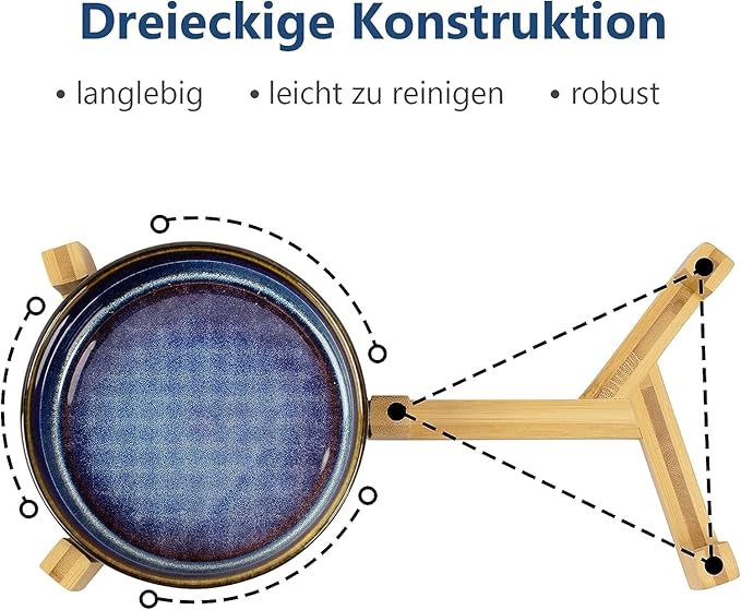 - [Double Bowl Design]:One dog bowl for food and one for water, Each ceramic cat bowl has a Unique wooden stand, raising the dishes closer to your pet for more comfortable eating