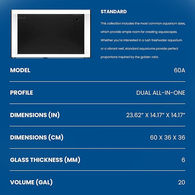 - [All in One Aquarium] Enjoy an integrated ecosystem combining freshwater and saltwater functions. With no additional equipment needed, providing steady flow and complete filtration. Features everything you love about our rimless aquariums, ready to build your own aquarium.