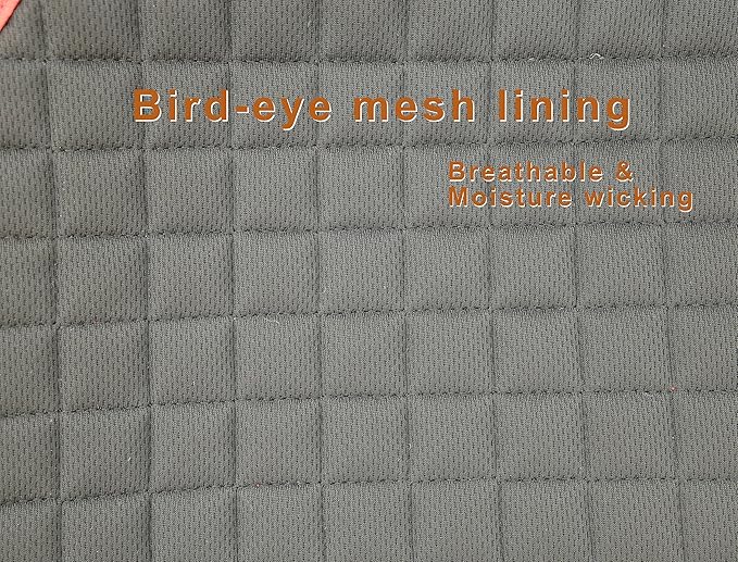 - The bird-eye mesh cloth as lining effectively controls heat and sweat, efficiently wicking away moisture. The pique surface helps keep it from slipping.