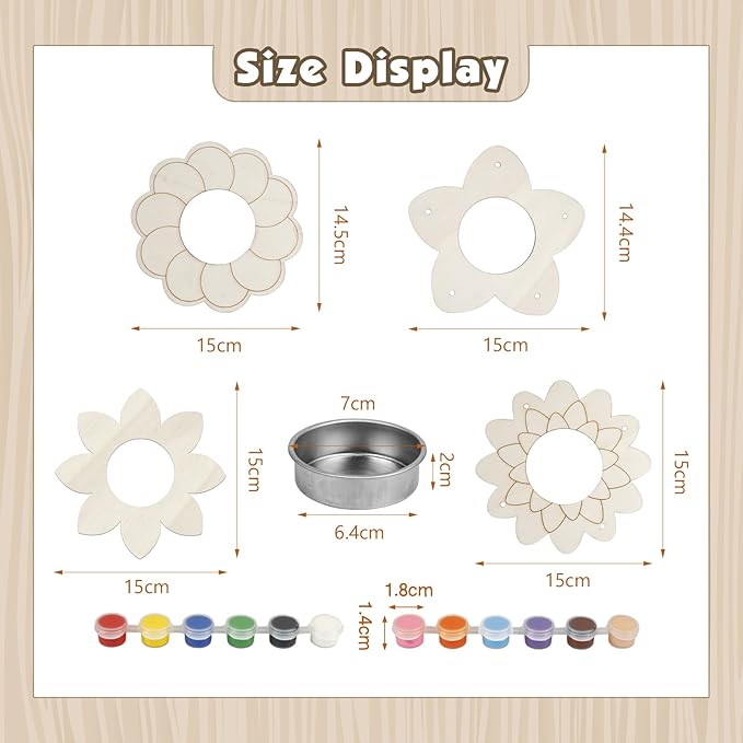 - Fun Arts and Crafts Project for Kids: Design and color the flower-shaped wood chips can stimulate children's creativity and hands-on ability, and improve children's hand-eye coordination. The process of parents accompanying their children to do handicrafts can also enhance the parent-child relationship.By making bird feeders, children can learn about animals and nature.