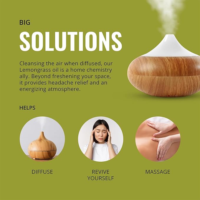 - Seamless Compatibility: Effortlessly craft lemongrass essential oil sprays with water. Blend with tea tree oil, rosemary essential oil, or eucalyptus essential oil for a unique aroma. Perfect for enhancing the ambiance of any space with a diffuser oil or lemongrass spray