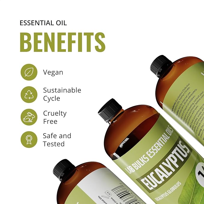 - Endless Versatility: Perfect for crafting soaps, room sprays, bath bombs, homemade shampoos, or candles. Lab Bulks eucalyptus essential oil for diffuser enhances your homemade cleaning products and pairs well with rosemary essential oil and lavender essential oil pure