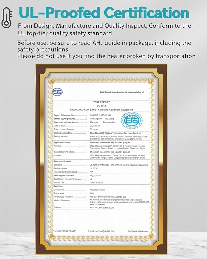 - 🐟🌡️[High Quality with Longer Life span] 🐟Before the digital aquarium heater delivery, we have 100% conducted a 72-hour heating test in water to ensure the safety of the product. Using a thick quartz tube, 1.5m/4.75 ft cable(U.S. UL Certified), high temperature resistant protective case which Prevents water plants from adhering to the quartz glass wall and protects small fish not touching the quartz tube.