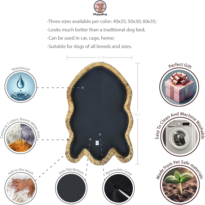 - GET THE RIGHT FIT: Whether you have a small pup or a large dog, our rug memory fur dog bed has you covered. Itβs available in 3 sizes (Medium: 40β L x 25β W, Large/Extra Large: 50β L x 30β W, Giant: 60β L x 35β W) to ensure your pet gets the perfect fit