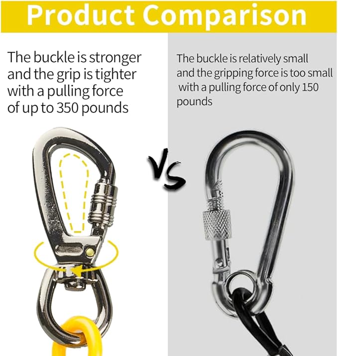 - Upgrade Heavy Duty Buckle & 360Β° Tangle Free-dog cable use heavy duty locking carabiner, stronger and more durable, with a 360Β° smooth rotation axis, your dog can run freely without getting tangled.