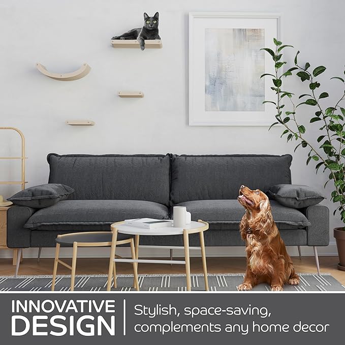 - INNOVATIVE AND SUSTAINABLE | Soft to the touch, firm in structure, and very tactile β cats love it! Our patent-pending cat shelf material is acoustic felt which is made from 100% Recycled PET bottles! It's built to withstand extended wear and tear.