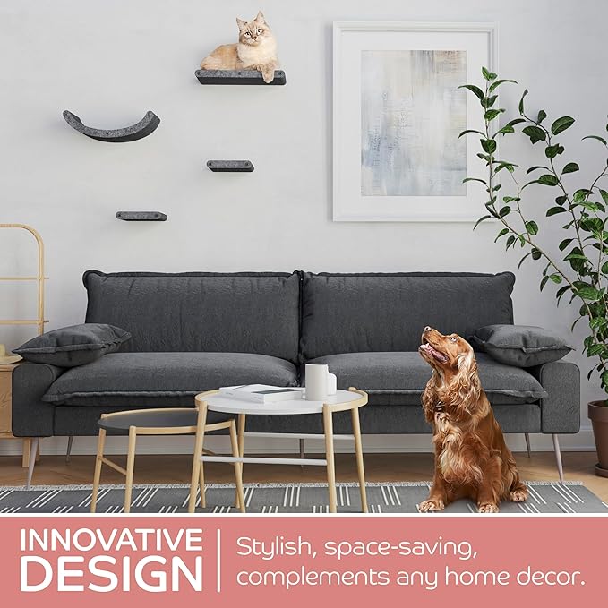 - INNOVATIVE AND SUSTAINABLE | Soft to the touch, firm in structure, and very tactile β cats love it! Our patent-pending cat shelf material is acoustic felt which is made from 100% Recycled PET bottles! It's built to withstand extended wear and tear.