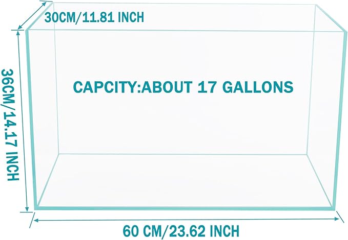 Ultra Clear Rimless Low Iron Glass Aquarium Tank (W23.62×D11.81×H14.17 inch(60x30x36cm)) 6mm Thickness Include Black Leveling Mat