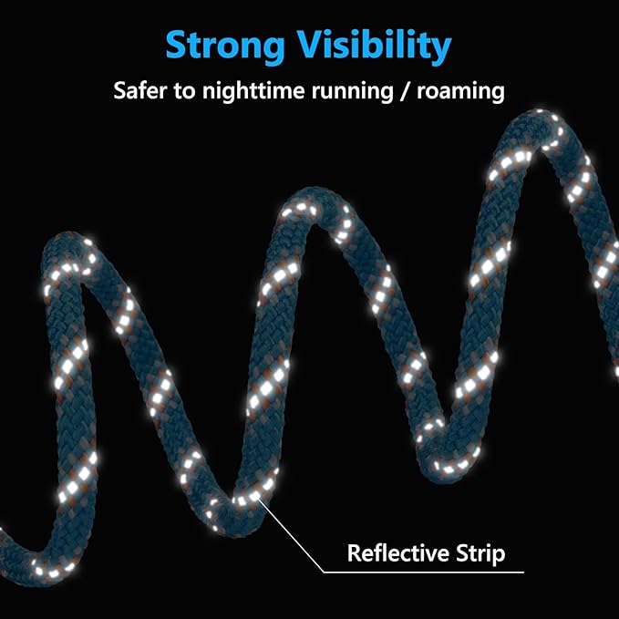 - Safer yard leash: Compared to the steel core dog tie out cable, which is easy to curl, our dog run cable is made of 13 strands of polyester core rope and weaved with kernmantle technique, these improves the dog run line to be tangle-free and wear-resistant. Reflective points on the rope bring dogs safety at night.