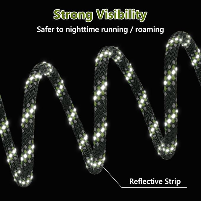 - Safer yard leash: Compared to the steel core dog tie out cable, which is easy to curl, our dog run cable is made of 13 strands of polyester core rope and weaved with kernmantle technique, these improves the dog run line to be tangle-free and wear-resistant. Reflective points on the rope bring dogs safety at night.