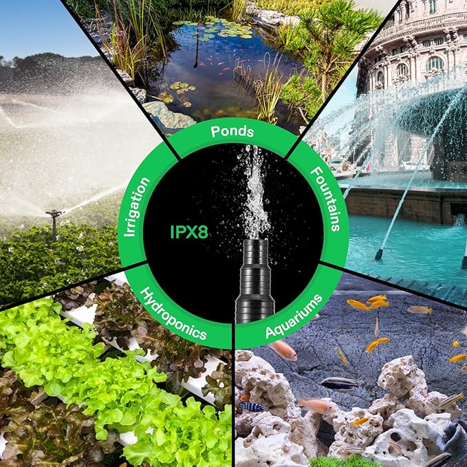 - Multiple Usage: Vivosun Fixed Flow Rate pump can be used as submersible or inline; Multifunctional design for diving or land use; It is ideal for a variety of applications such as ponds, fish tanks, fountains, waterfalls, etc.