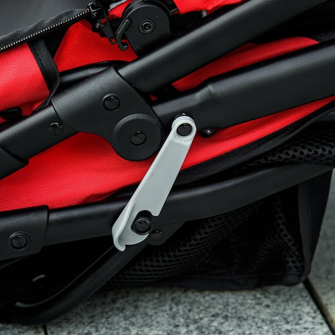 - High-Security: This pet jogging stroller's cabin features leashes that keep pets inside securely. Reflective strips are incorporated to ensure visibility at night. Additionally, a rear footbrake prevents your dog buggy from rolling too fast.