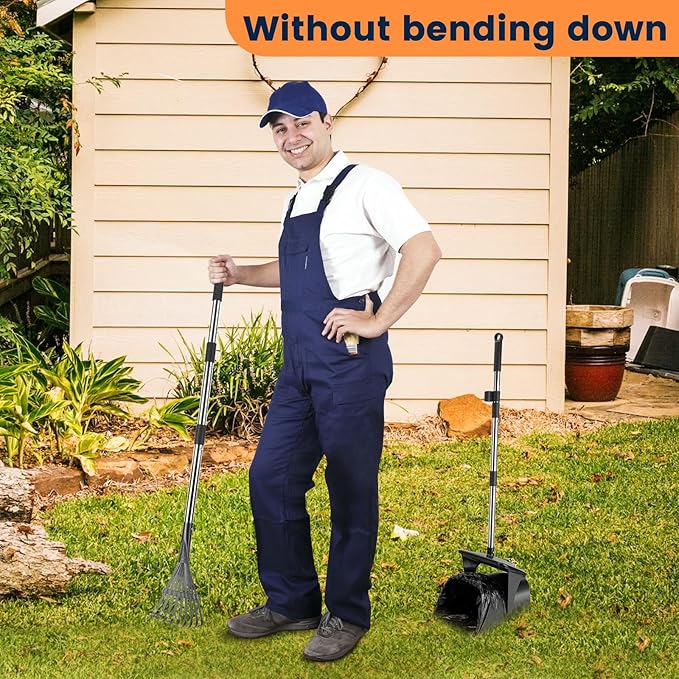 - 【Comfortable Size】The swivel bin measures 39.3" in length, the rake 36.8" , making it easy to clean up your dog's poop without bending over.