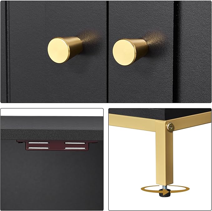 - Modern style: The cat litter box cabinet features black finish and metallic gold-colored metal frame, adding an elegant and stylish touch to your home decor. Its minimalist design and exquisite detailing inject a touch of luxury and sophistication into your living space