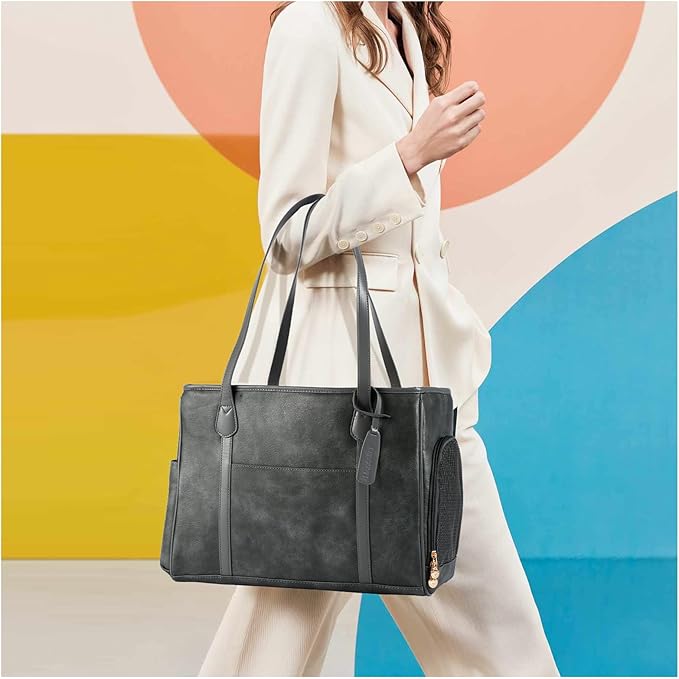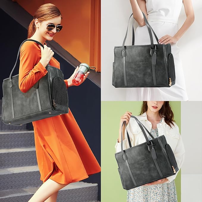 Stylish Dog Purse Carrier, Leather Pet Carrier Bag for Small Dogs Cats Puppy, Airline Approved Soft-Sided Carrier Grey