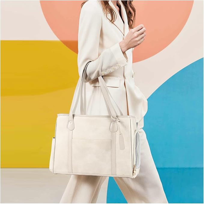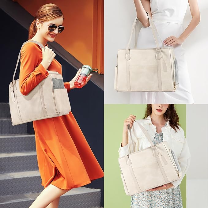Stylish Dog Purse Carrier, Leather Pet Carrier Bag for Small Dogs Cats Puppy, Airline Approved Soft-Sided Carrier Beige