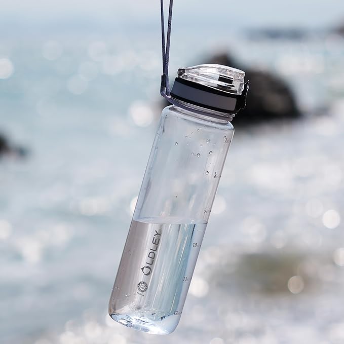 OLDLEY 32 oz Water Bottle, Motivational Water Bottle with Time Marker, Sports Water Bottle With Strap, Leakproof & BPA Free Large Water Bottles for School, Gym, Travel, Outdoor, Tritan, Transparent