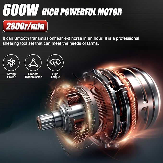 - 【High-Performance Horse Clippers】: Presenting our advanced electric grooming solution with a powerful 600W motor and adjustable 6-speed control reaching up to 2800 RPM. Designed for professional grooming tasks, our clipper ensures comfortable handling and enhanced safety features, facilitating precise grooming sessions for horses and other large animals.