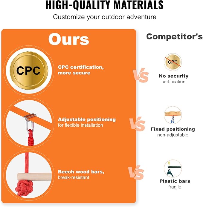 - Quick Installation and Disassembly: The outdoor playset equipment can be assembled in just 5 minutes. There's no need for a wide flat area in your yard; just fix it between two trees or poles 20 to 40 feet apart to start customizing your obstacle challenge game! It's an ideal alternative to traditional playgrounds, offering a convenient and flexible backyard challenge game for children of various ages and skill levels.
