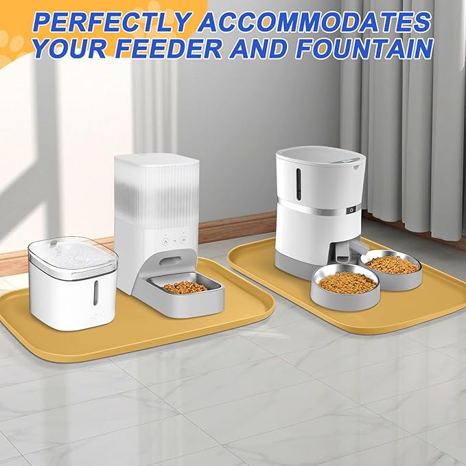 - Widely Used - The anti slip dog food spill mat with high sides can also be used under pet water fountain, automatic feeder, and litter boxes to help contain messes and protect floors. Use as boot mat, shoe matt tray for entryway, pet water splash mat, dog water bowl drip pan. Can also be used for dog crate, trash can, pet water dispenser, countertop, plant, fish tank.