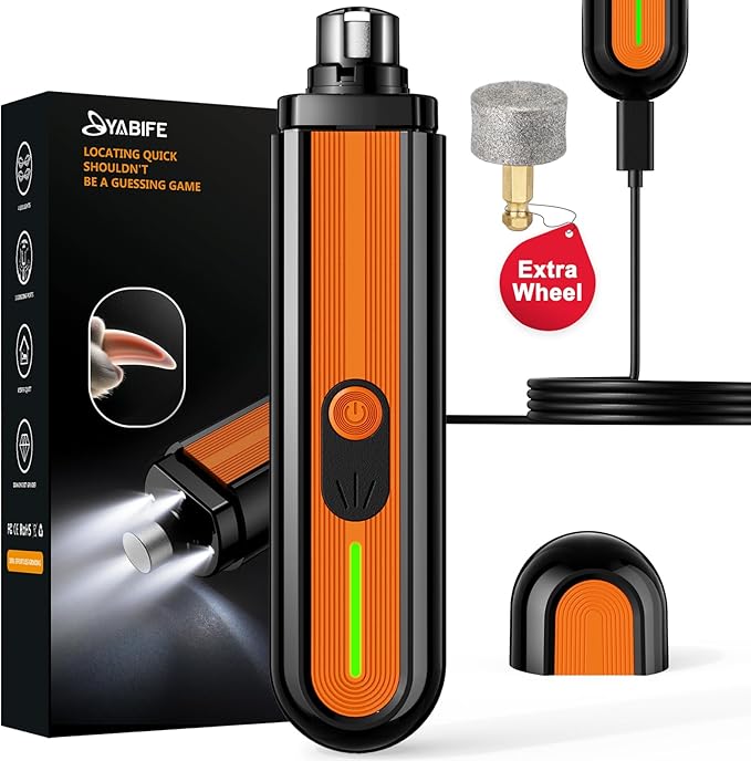 YABIFE 4-Lights Dog Nail Grinder, Easy Quick Locate Dog Nail Trimmers, for Puppy Paw Toenails or Pets from Small, Medium to Large, with Travel Lock, Whisper Quiet, Heavy Duty 3 Speeds