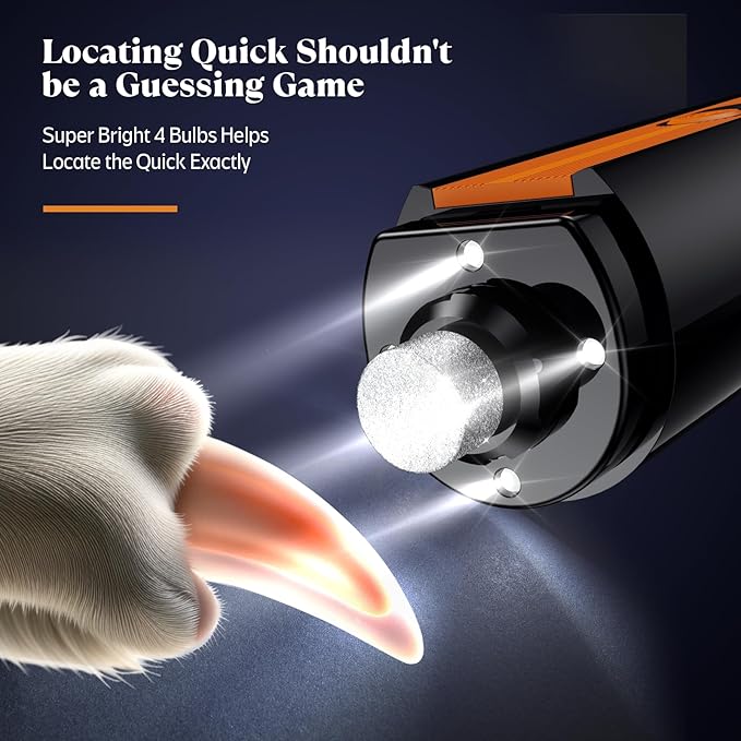 - 𝙏𝙧𝙞𝙢𝙢𝙞𝙣𝙜 𝙙𝙤𝙜 𝙣𝙖𝙞𝙡𝙨 𝙨𝙝𝙤𝙪𝙡𝙙𝙣'𝙩 𝙗𝙚 𝙖 𝙜𝙪𝙚𝙨𝙨𝙞𝙣𝙜 𝙜𝙖𝙢𝙚!:The 4 lights in all directions ensures you can see quick and nail details, making the process stress-free for both you and your furry friends, even during evening nail care sessions