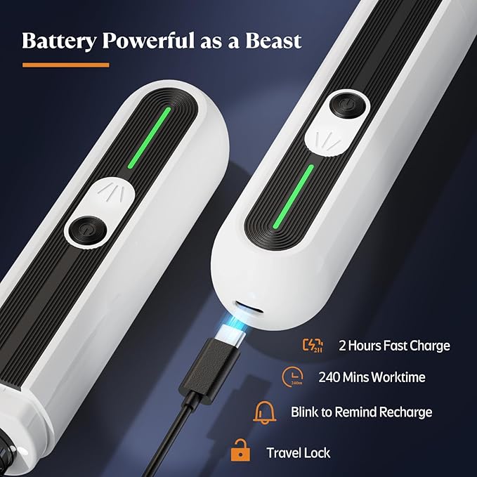 - 𝘼 𝙛𝙪𝙡𝙡 𝙘𝙝𝙖𝙧𝙜𝙚 𝙧𝙪𝙣𝙨 𝙛𝙤𝙧 240 𝙢𝙞𝙣𝙨: which qualifies for months of dog nail filing usually. You would never find yourself halfway through a nail trim when suddenly it dies. Also the charge indicator keeps you informed of the battery status at a glance, allowing you to recharge timely