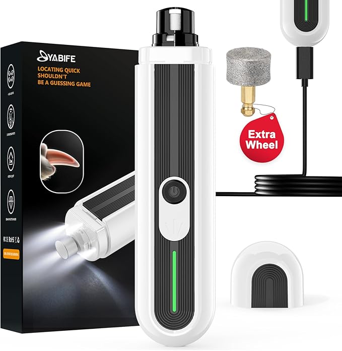 YABIFE 4-Lights Dog Nail Grinder, Easy Quick Locate Dog Nail Trimmers, for Puppy Paw Toenails or Pets from Small, Medium to Large, with Travel Lock, Whisper Quiet, Heavy Duty 3 Speeds