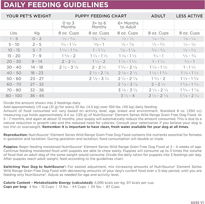 - NutriSource Element Series Wild Range is formulated to meet AAFCO guidelines for all life stages