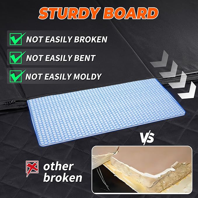 - Pet-Parent Friendly Installation:Integrated design,open,set up in seconds with heavy-duty buckles-no tools or tangled straps,and no need to install hardboard by yourself;Includes seat belt openings for added safety and convenience.When not in use,it can be folded and stored in a storage bag,not occupy space.