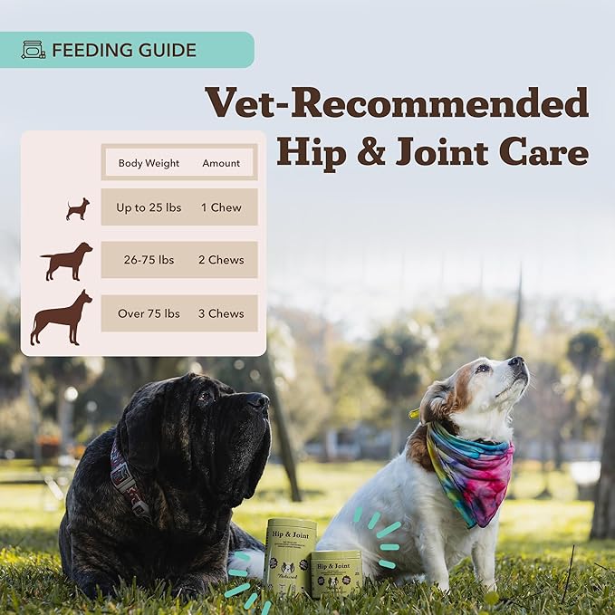 - JOINT CARE SUPERHERO: Our joint supplement for dogs offers natural benefits while being irresistibly tasty. Relieves stiffness, aids mobility, and supports overall wellness. Ensuring your furry friend's happiness and comfort with our hip and joint for dogs supplement.