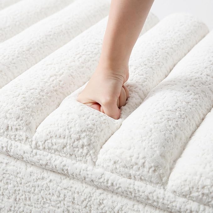 Kmax 45" Storage Bench Faux Fur Entryway Bench Upholstered Ottoman Bench with Wavy Top & Safty Hinge for Bedroom Living Room Hallway, White