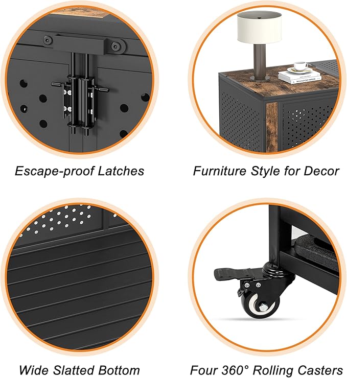 - [Washable Tray and Lockable Wheels] The dog cage comes with an entire washable plastic pan that simplifies the cleaning process. Additionally, the lockable wheels provide the flexibility to position the crate wherever needed with ease.