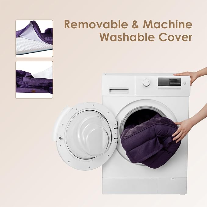 - CARE INSTRUCTIONS: Our dog bed features a removable and washable cover with a zipper closure, making it easy to clean. Remove the foam insert, and the cover can be washed in a machine. Please note that the foam insert is not washable. Allow the bed to expand for 24-48 hours after unpacking.