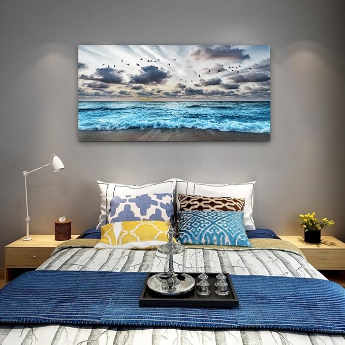 Lapremoly Black And White Beach Wall Painting Canvas Wall Art For Living Room Wall Decor For Bedroom Office Wall Decor Blue Sea Wave Pictures Artwork Modern Hotel Room Home Wall Decoration 20x40 In