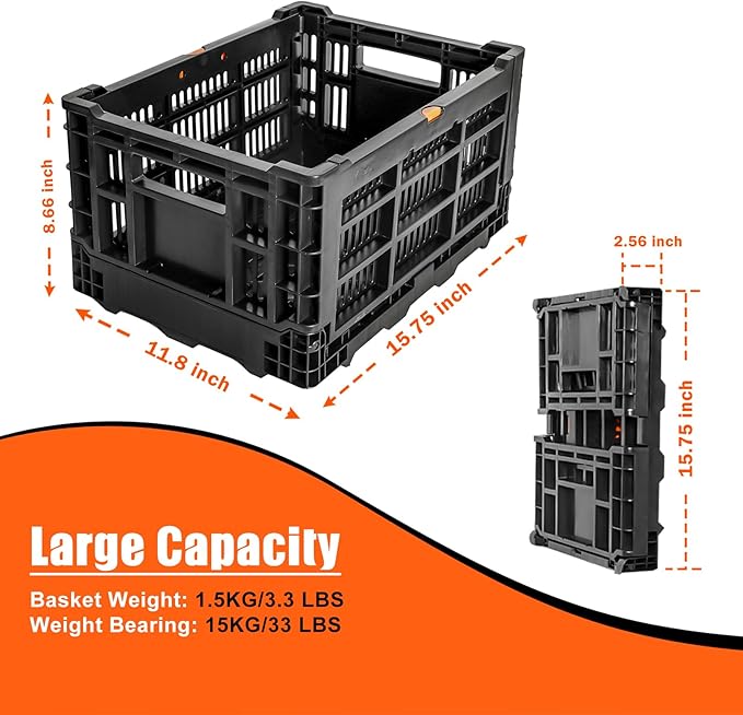 - Folding Design for Easy Use: Folding design of bike crate for rear rack allows for effortless installation and storage, making it a practical solution for cyclists of all levels. Whether you're commuting to work or heading out for a leisurely ride, rear bike rack basket adapts to your needs with ease