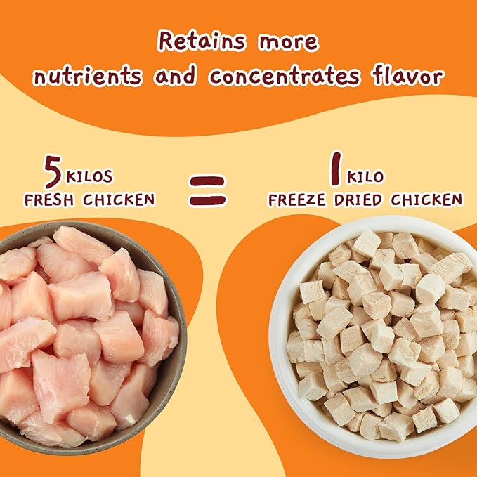 - PREMIUM QUALITY FREEZE DRIED CHICKEN: Selected high quality chicken is vacuum freeze-dried at ultra-low temperature to maintain the nutrition and taste