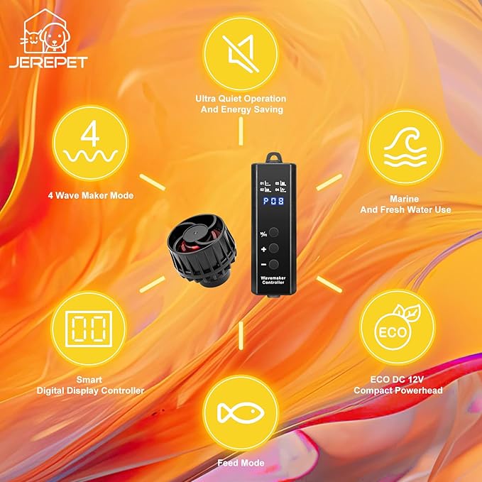 - Smart Controllable Wave Maker:with smart digital display controller with multiple mode ,can set pluse wave mode, steady strem flow mode,10 minutes feed mode,ideal for nano coral reef tanks;