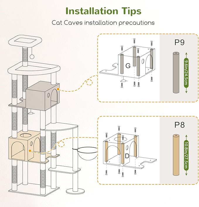 - EASY TO INSTALL: Big cat tree features a simple assembly structure and detailed instructions, making it quick and easy to set up, saving you time and effort.