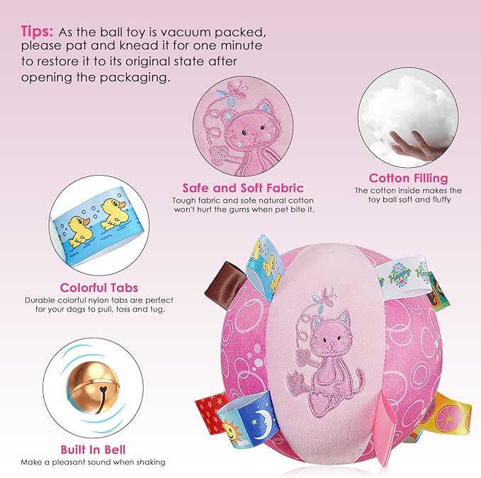 • Interactive Squeaker Toy: Each stuffed dog ball toy is equipped with a built-in bell that produces a pleasant sound when shaked, enticing dogs to engage and play. Each ball has 15 colored tags on it, making it easy for you to interact with your dog.