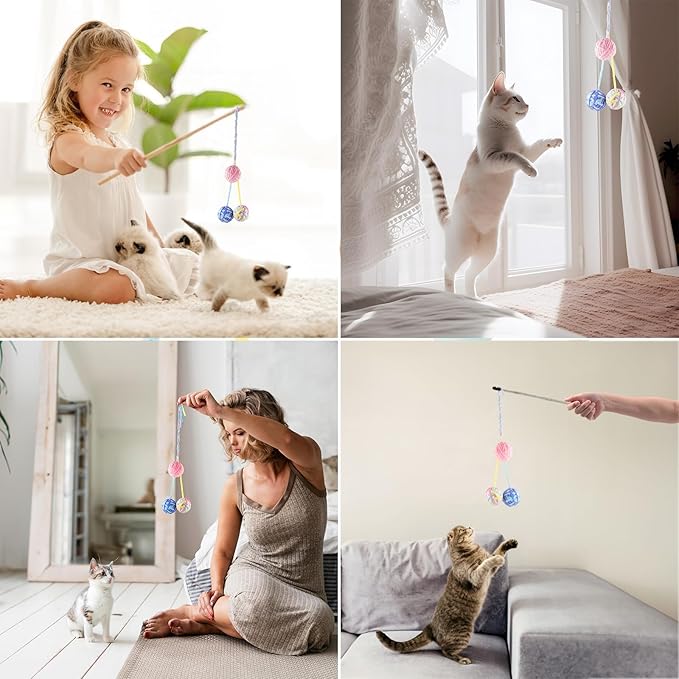 - Special Designs- Cat toys balls come with a lengthy strand of yarn that can be attached to a teaser stick, scratching board, or other pleace, which engage indoor kittens in playful activities and encourage their natural scratching instinct