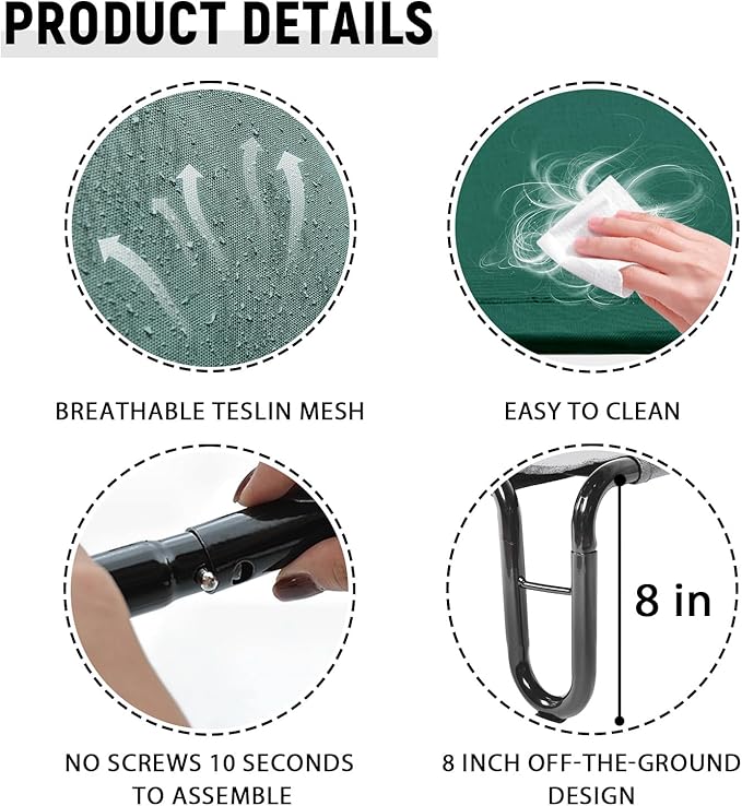 - Sturdy & Stability Structure: It features a sturdy, powder-coated steel frame with U-Shaped design and skid resistant rubber feet provide extra stability during movement, making this ultra comfortable bed ideal for use on various surfaces. The portable design is great for indoor and outdoor use