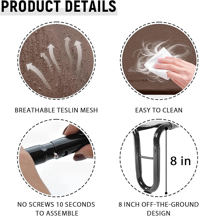 pettycare Elevated Outdoor Dog Bed - Cots Beds for Medium Dogs, Waterproof, Raised Cot, Easy to Assemble, Cooling with Teslin Mesh, Durable, Non Slip, Up to 40 lbs, Brown