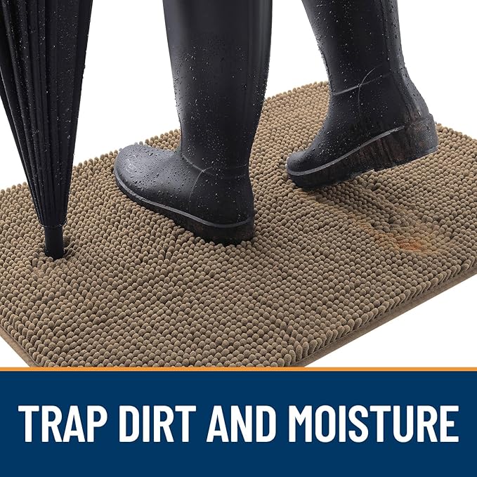 OLANLY Dog Door Mat for Muddy Paws 47x24, Absorbs Moisture and Dirt, Absorbent Non-Slip Washable Doormat, Quick Dry Chenille Mud Mat for Dogs, Entry Indoor Entryway Carpet for Inside Floor, Tan