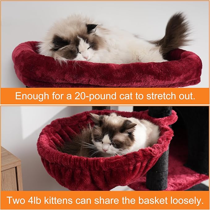 - [68" Tall, Multifunctional Design] Step-like jump multi-layer structure design of cat furniture, convenient for cat's scratching, climbing, sleeping, and exercising; The big cave, basket and hammock offer private space for catnap or hiding; Hammock to lounge and enjoy the leisure time