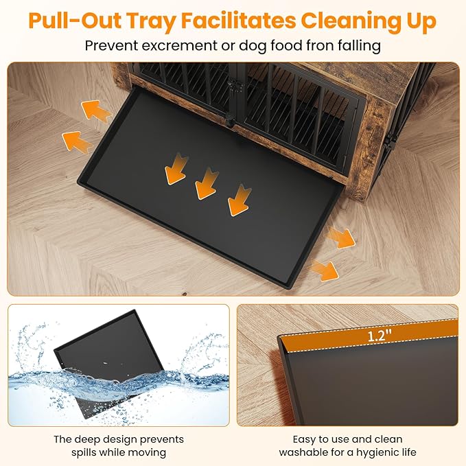 Dog Crate Furniture, Dog Crate End Table for Small and Medium Dogs,Wooden Cage Kennel Furniture Indoor, Modern Dog Crate with Multi-Purpose Removable Tray, Double-Doors Dog Furniture, Rustic Brown