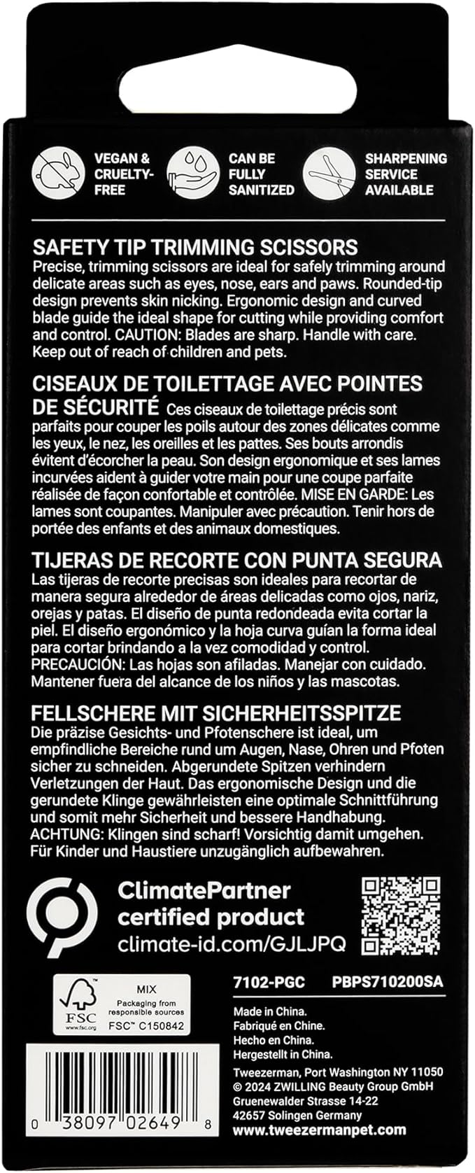 Tweezerman Pet Grooming Scissors, Stainless Steel Rounded Tip Trimming Shears for Dogs and Cats