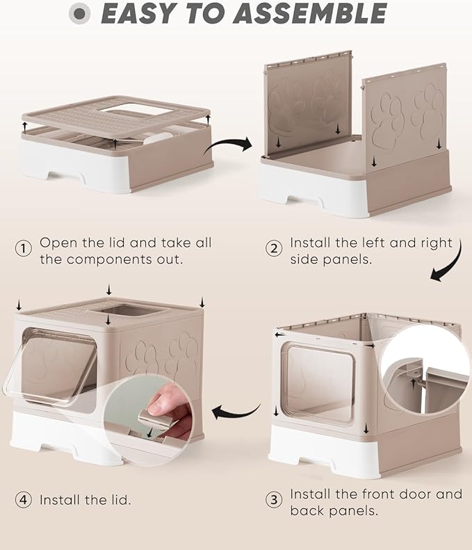 - Foldable and Portable Design: The foldable design of this covered litter box making installation and disassembly simple. When not in use, it can be folded to save space for easy storage.Its lightweight yet easy to carry structure offers more convenience when you want to travel with your cat, while allowing your cat to have a stress free toilet environment anytime and anywhere